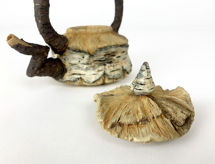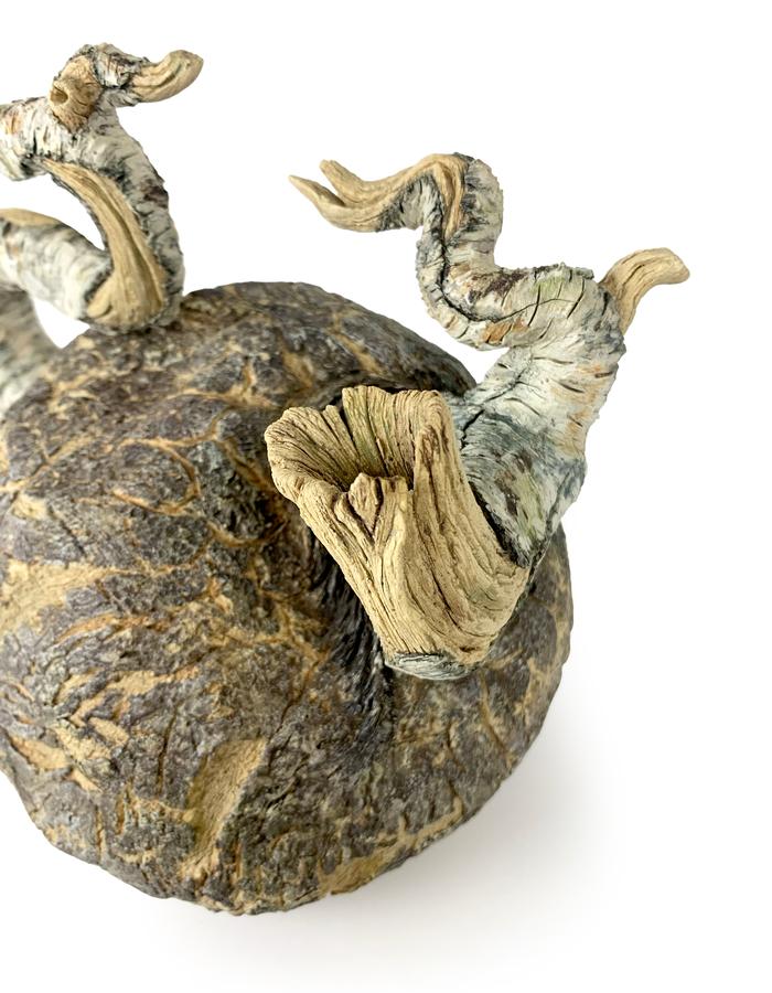 With my trompe l'oeil ceramic works I challenge the viewer with both the nature of the material and the messages within. Forms are completely hand-built and hand-carved with hyper-realistic textures transformed into charred logs, weathered wood and birch trees - the angels of the forest.