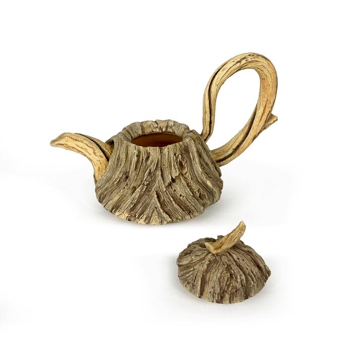 Each piece Serritella makes begins as a blank piece of clay where work begins spontaneously and intuitively without the use of wood samples or models. He uses wheel throwing, slab building and hand building techniques to create his expressive forms. All the texture and details are hand-carved and no molds are used. After applying ceramic oxides for accent colors, the pieces are fired to over 2,100º F.